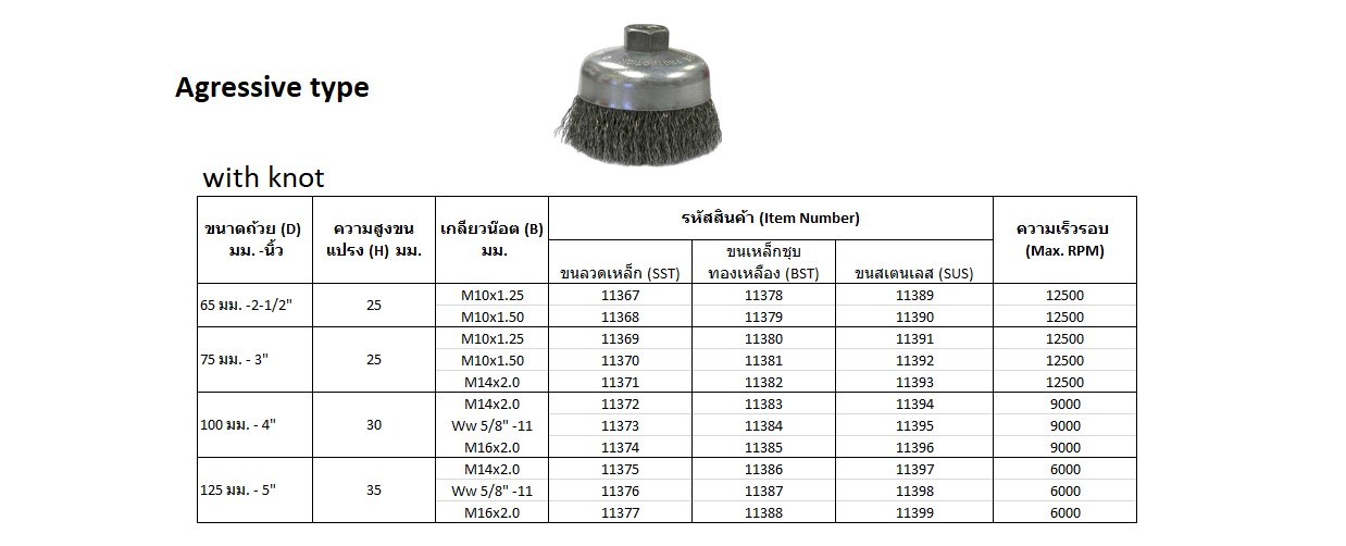 หน้าแรก / แปรงอุตสาหกรรม / แปรงลวด / แปรงลวดถ้วย ( Crimped Wire Cup Brushes )