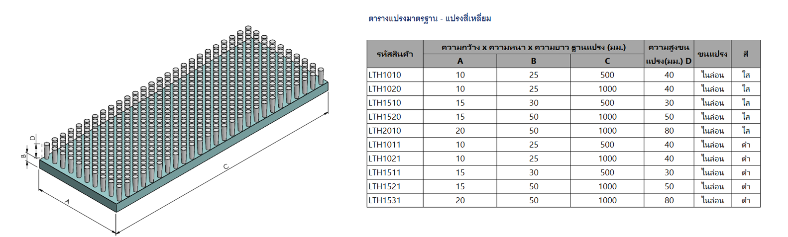 แปรงสี่เหลี่ยม หรือ แปรง Lath Brush เป็นแปรงยิงขนแบบแถบแบน สามารถใช้งานได้หลากหลายเใช้ติดตั้งเพื่อรองชิ้นงาน กันวัสดุตกหล่น ลวดลายของแปรงสามารถกำหนดความถี่ หรือ ความห่างของแปรงได้ตามความต้องการ เนื่องจากสามารถกำหนดลวดลาย ได้หลากหลาย ทั้งแบบตรง แบบสลับฟันปลา แบบลายเอียง ฯลฯวัสดุแกนแปรงสามารถเลือกได้หลายชนิด เช่น พลาสติก ไม้ สายพาน เป็นต้น