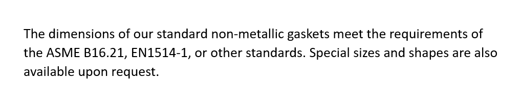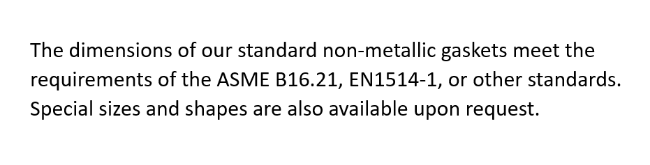 Other grades of materials and gaskets are also available on request.